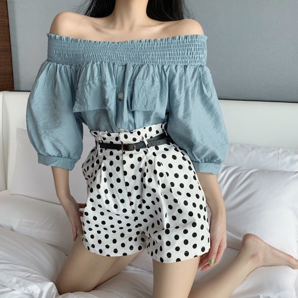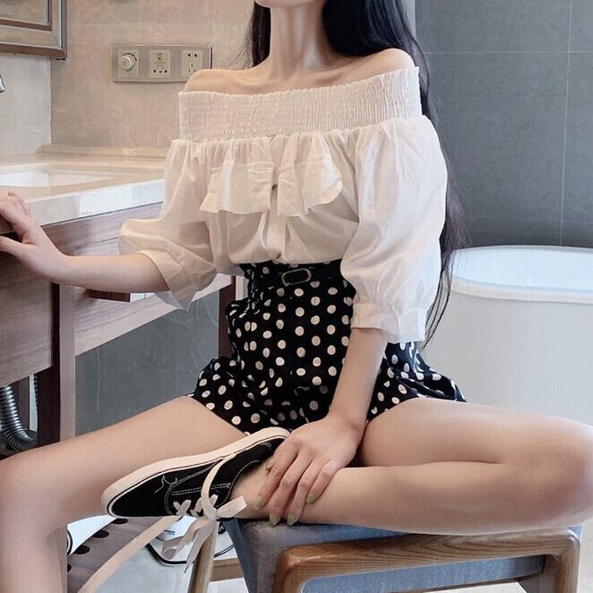 フリル 肩出し オフショルダー オフショル ギャザー シャツ ブラウス かわいい5671724