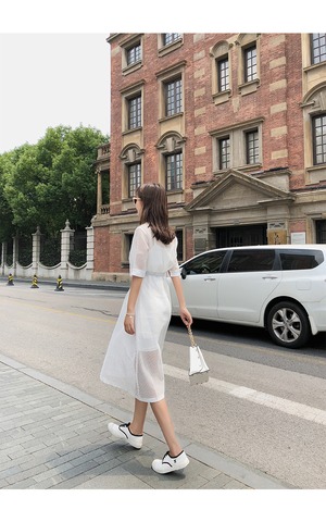 メッシュ ベルト 透け感 ヒラヒラ シンプル ワンピース6502611