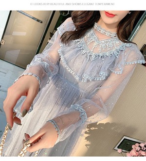ドレス ワンピース メッシュ レース シースルー チュール オーガンジー ベルスリーブ かわいい 可愛い ガーリー 大人可愛い 大人かわいい フェミニン 大人ガーリー 女性 レディース かわいい2456150