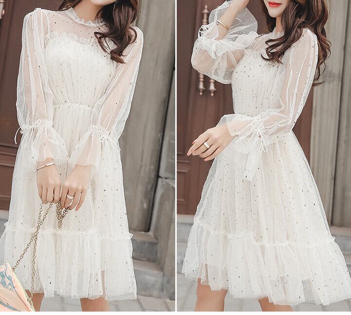 キラキラ レース シースルー チュール オーガンジー ふんわり ワンピース ドレス かわいい1925041