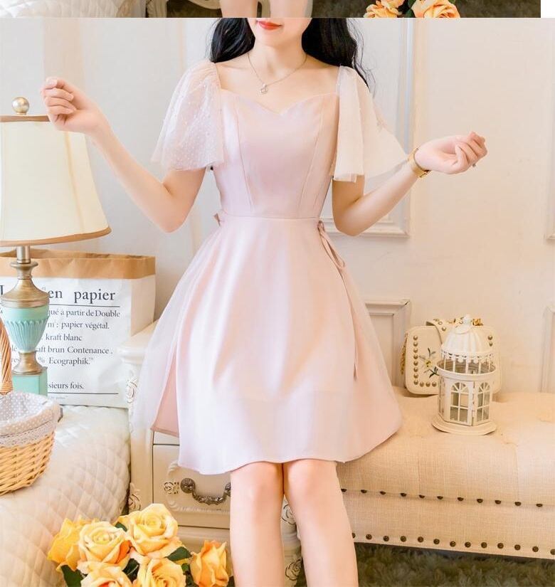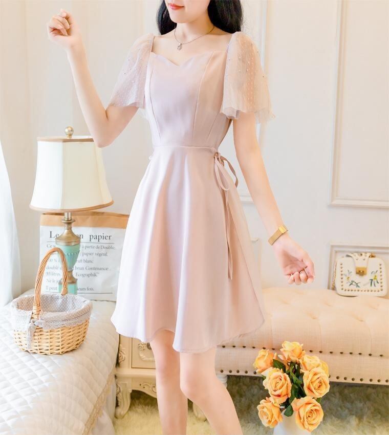 パステルカラー 袖 レース スリーブ お姉さん ワンピース 女性 レディース4645536