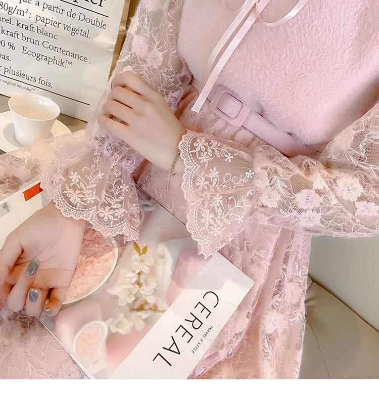 花柄 お花 フラワー レース スカート ステッチ 女性 レディース ドレス ワンピース かわいい0872334