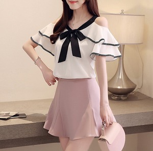 シフォンシャツ リボン トップス ショート ショート丈 ミニ ミニ丈 女性 レディース ガーリー_フェミニン0271177
