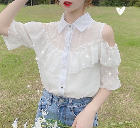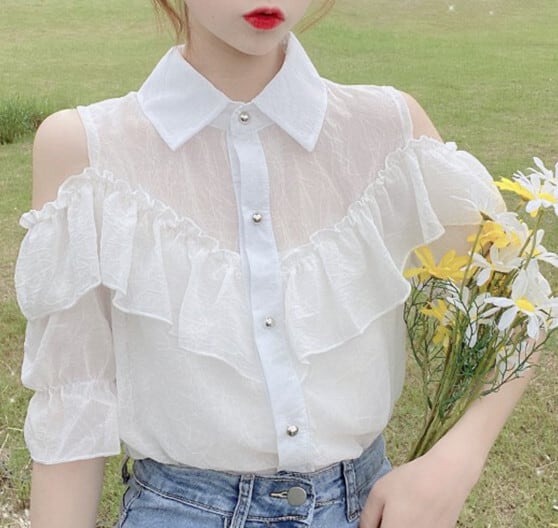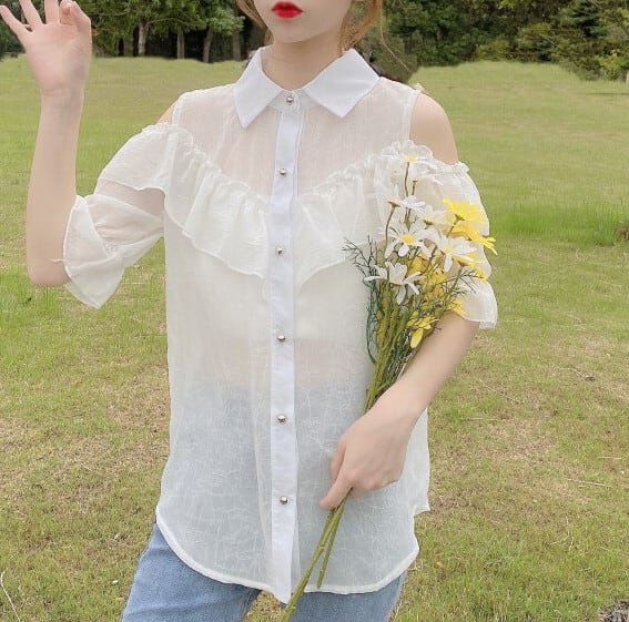 トップス ラッフル フリルシフォンシャツ ステッチ 女性 レディース 8503999
