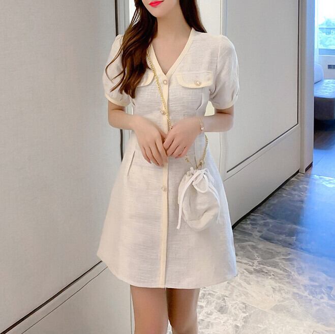 リボン ボタン ウエスト薄手 Aライン ドレス ワンピース ショート ショート丈 ミニ ミニ丈 レトロ 女性 レディース フェミニン15882759