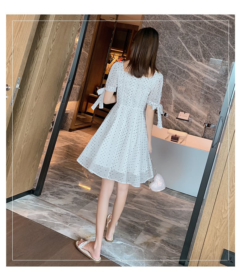 花柄 お花 フラワー シフォン ドレス ワンピース 袖Aラインスカート ショート ショート丈 ミニ ミニ丈 スクウェア スクエア 女性 レディース ガーリーフェミニン5022927