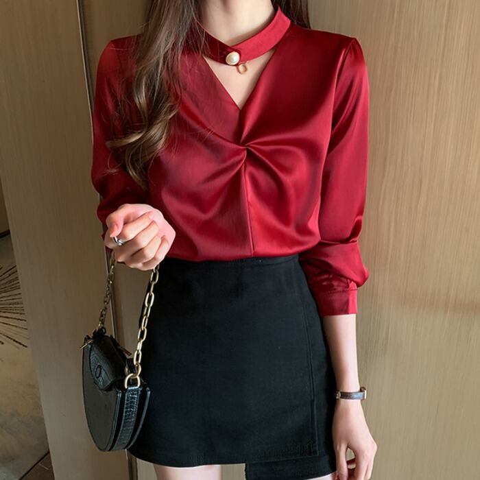 サテン サテン生地 チョーカー ブラウス シャツ ホルター 女性 レディース リボン4936571