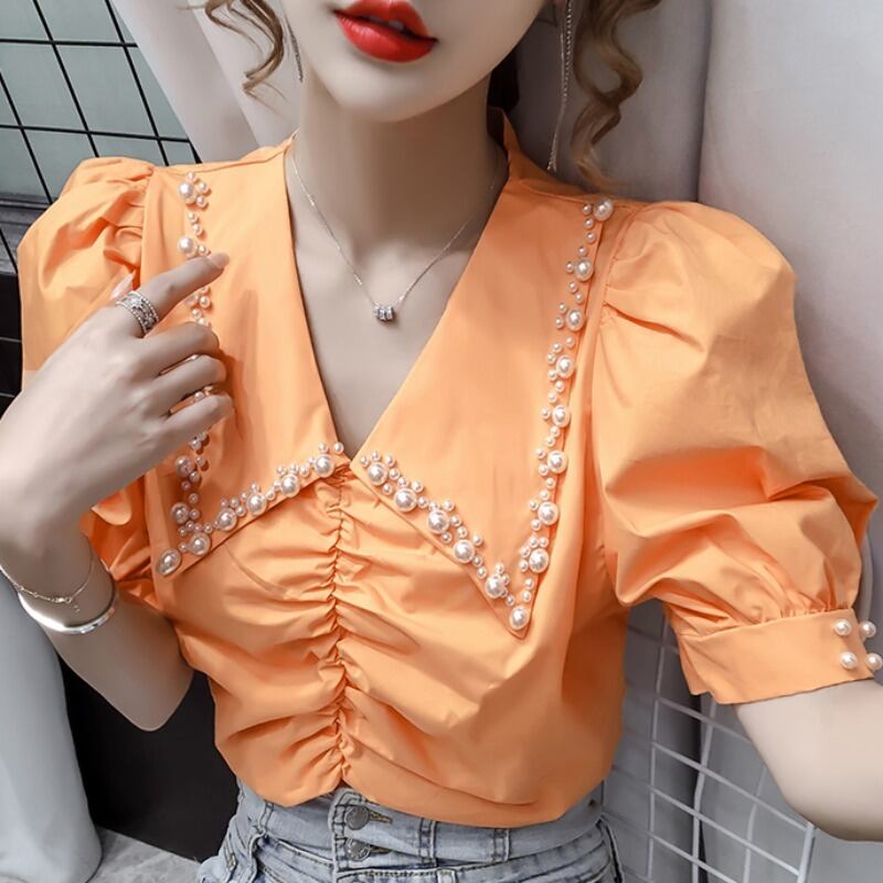 パール シャツ ルーズ 薄手 ショート ショート丈 ミニ ミニ丈 女性 レディース リボン1373869