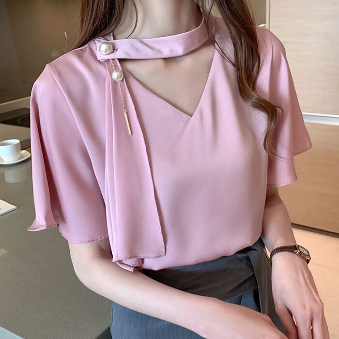 チョーカー スカーフ リボン Vネック シャツ ブラウス 女性 レディース0601063