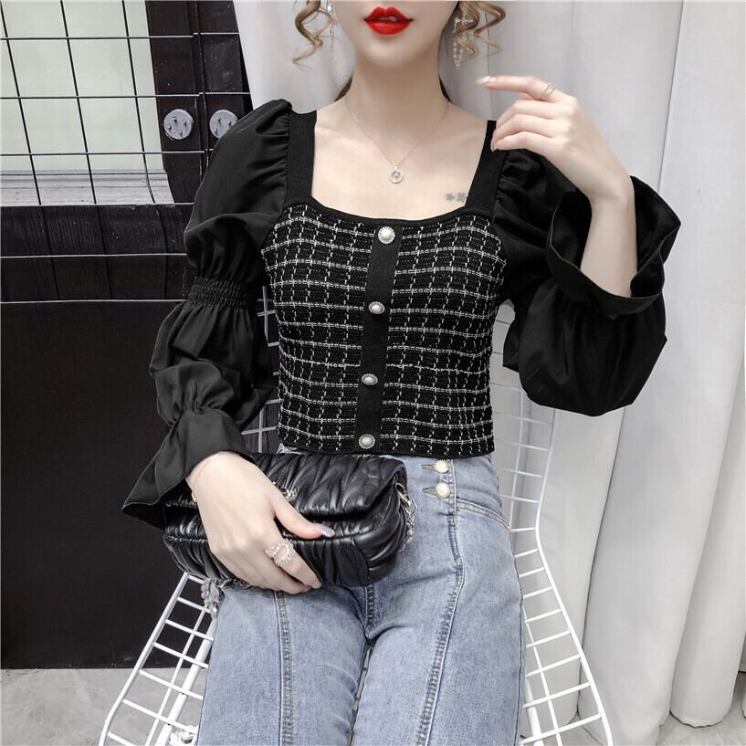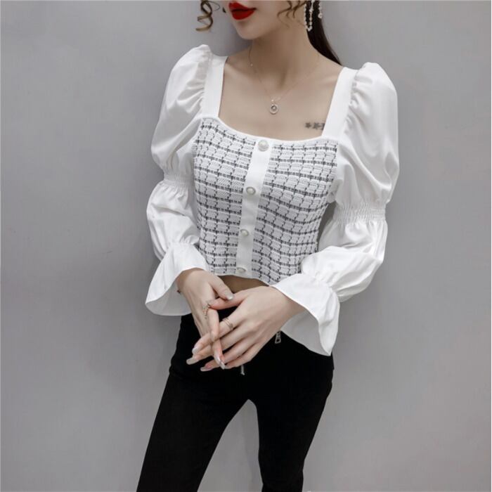 シャツ 薄手 ショート ショート丈 ミニ ミニ丈 ランタンスリーブ バルーンスリーブ ランタン袖 バルーン袖 スクウェア スクエア ステッチ 女性 レディース86018031131