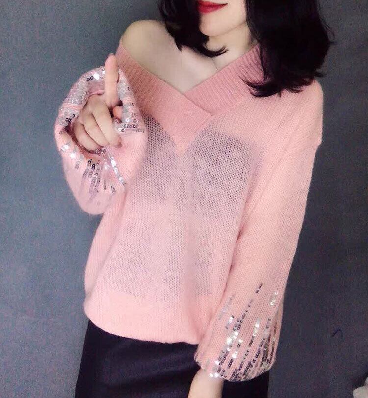 ニット セーター プルオーバー ルーズ スパンコール ランタンスリーブ バルーンスリーブ ランタン袖 バルーン袖 女性 レディース ニット系37120242324