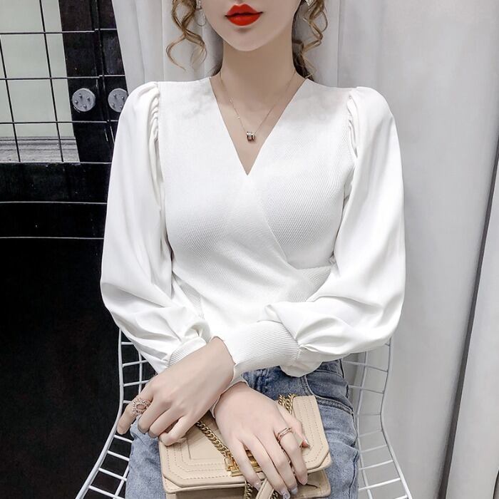 Vネック シャツ ニット セーター トップス ピュア ステッチ 女性 レディース リボン14011298750